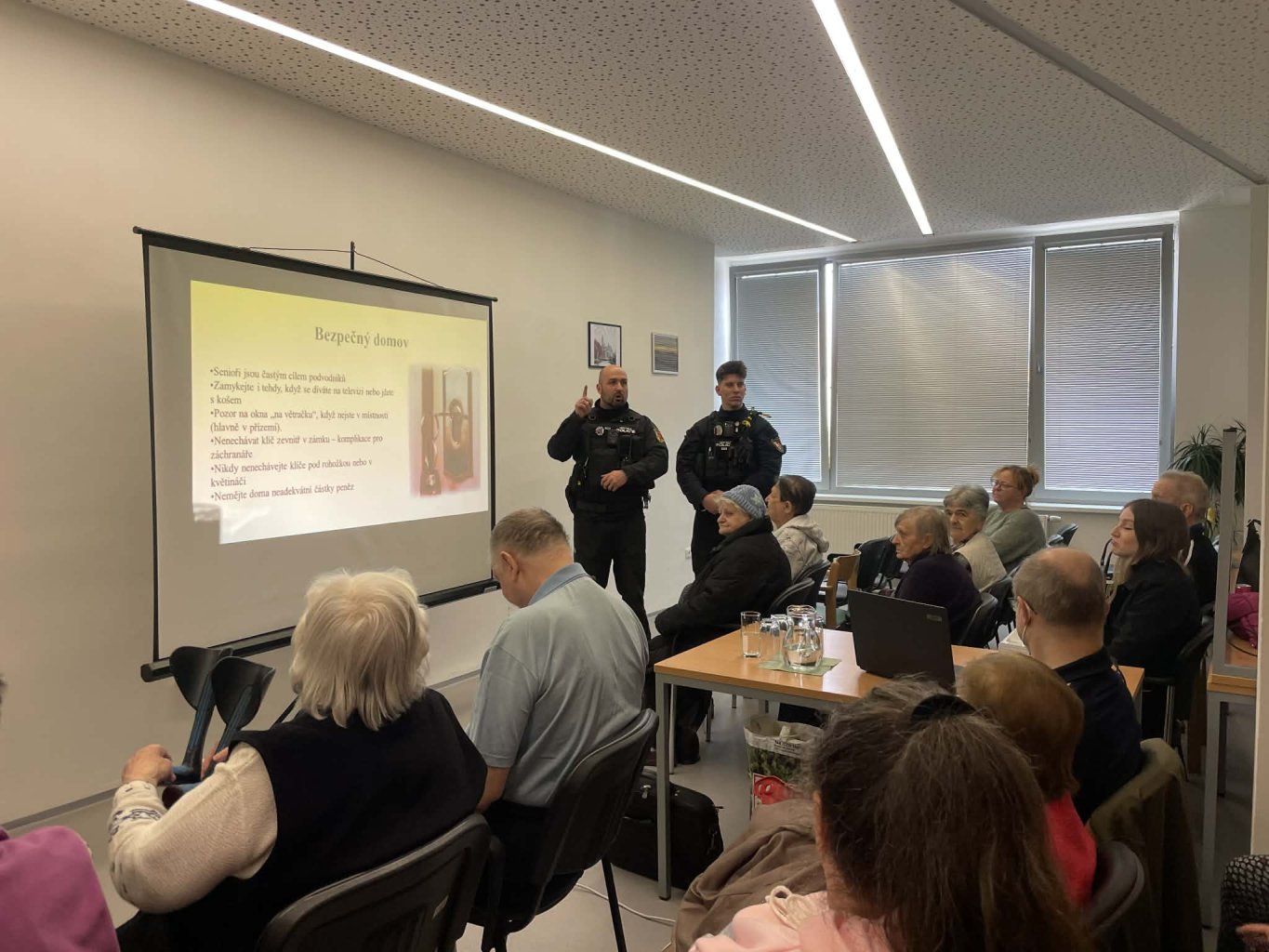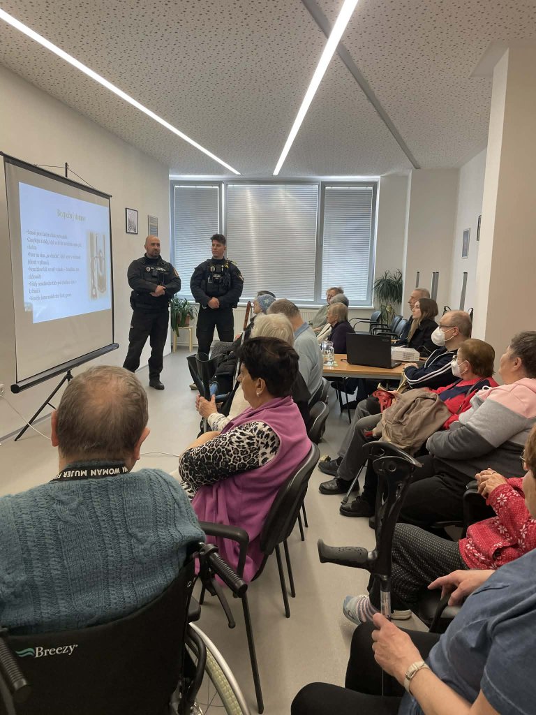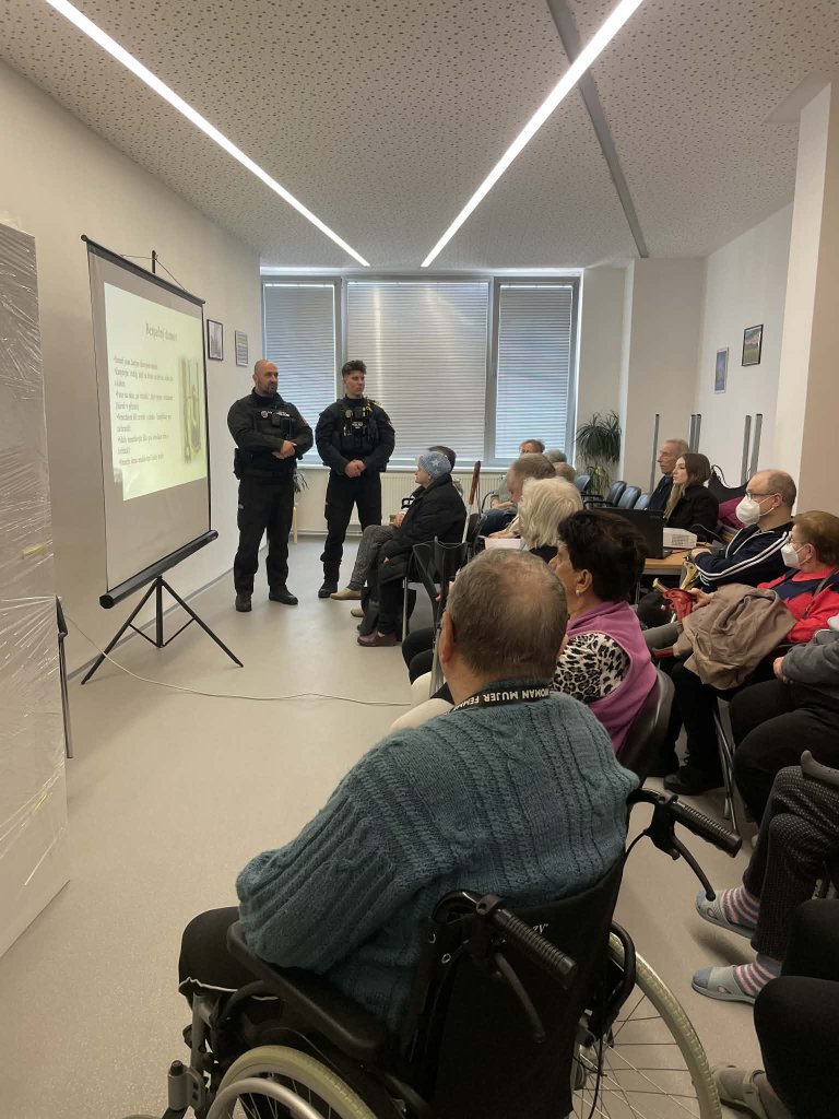 Včera 1. 4. 2026 v odpoledních hodinách se u nás na ulici Česká 320 konala beseda s městskou policií Kopřivnice. Tématem besedy byla bezpečnost nájemníků doma, ve veřejném prostoru, v dopravě a při používání chytrých mobilních telefonů. Strážníci zdůraznili důležitost nevpouštět cizí osoby do bytu, nemít doma velkou hotovost, používat reflexní prvky a mnoho dalších zajímavostí. Nájemnici byli poučeni o používání řetízků k hlavním dveřím a také si mohli požádat o instalaci řetízků zdarma. Všichni jsme zranitelní a opatrnosti není nikdy nazbyt. Věříme, že prevence je základ a to v každé době, proto děkujeme městské policii za spolupráci a budeme se těšit zase někdy příště.
