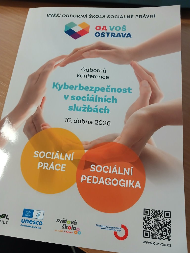 Tým vedení naší organizace se včera zúčastnil odborné konference na téma Kyberbezpečnost v sociálních službách, kterou pořádala Vyšší odborná škola sociálně právní v Ostravě pod záštitou Ministerstva práce a sociálních věcí a dalších partnerů, včetně Asociace poskytovatelů sociálních služeb ČR.