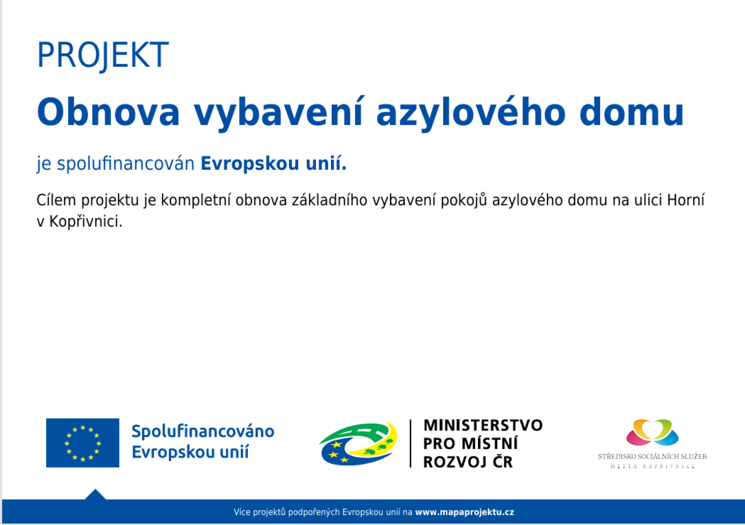 - na ulici Horní 1113 v Kopřivnici; azylový dům se nachází v okrajové části města, jedná se o jednopodlažní dům, v přízemní části a v 1. podlaží se nachází azylový dům a v suterénu budovy je noclehárna